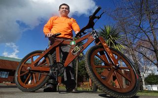Trabajador forestal construye bicicleta de madera
